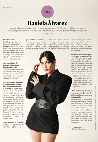 Con una carrera en constante crecimiento, Daniela Álvarez se perfila como una de las actrices jóvenes con mayor proyección dentro de la nueva generación de talento en México.
